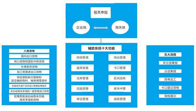 航通智能保稅物流中心輔助監(jiān)管系統(tǒng)是以實現(xiàn)貨物快速有序地流轉(zhuǎn)、高效運作、有效監(jiān)管為目的的應(yīng)用輔助管理系統(tǒng)。該系統(tǒng)以保稅物流中物流賬冊為核心,以進出保稅物流中心的貨物物流為主線,滿足保稅倉儲、轉(zhuǎn)口貿(mào)易、國際中轉(zhuǎn)、國際采購、分撥和配送,以及流通性簡單加工和增值服務(wù)等業(yè)務(wù)。